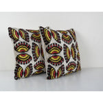 Velvet Ikat Cushion - Square Matching Beige Silk Ikat Velvet Pillow Cover - Uzbek Home Decor 21'' x 22''