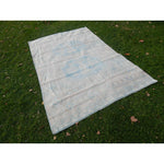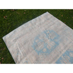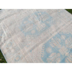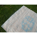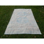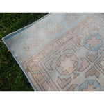 Vintage 1960s Anatolian Geometric Distressed Kars Wool Oushak Rug