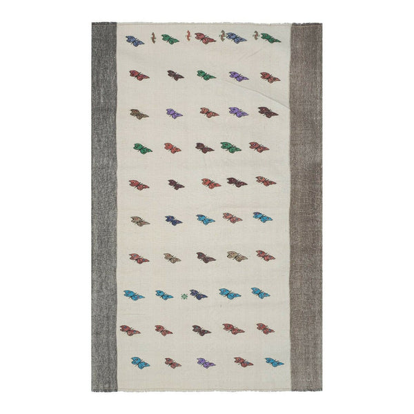 Vintage Aubusson Butterfly Pattern Kilim Rug - Embroided Turkish Kilim