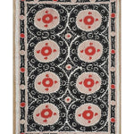 Vintage Black and Pink Suzani from Samarkand Uzbekistan, C.Asian Suzani Textile