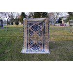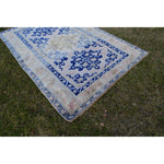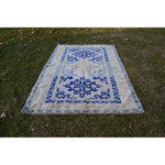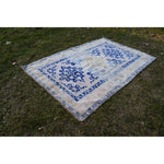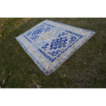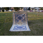 Vintage Blue Caucasian Rug - Traditional Hand Woven Wool Carpet 4'8" X 6'11"