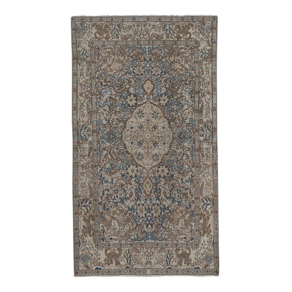 Vintage Botanical Animal Handmade Wool Rug - Abstract Pattern Rug 3'4'' x 5'11''