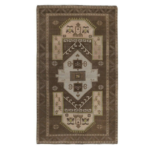 Vintage Brown Turkish Kars Rug with Mid-Century Modern Style 5'10" X 10'