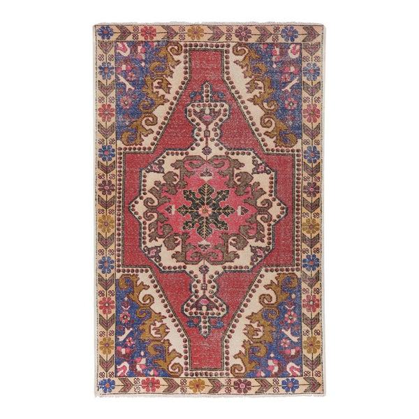 Vintage Hand Knotted Red Turkish Area Rug 4'8'' X 7'1''