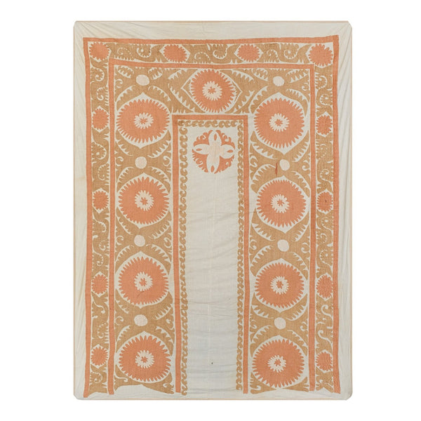 Vintage Neutral Tan Central Asian Suzani Textile, Embroidered Cotton Soft Uzbek Samarkand Tapestry, Wall Hanging Tapestry 5'5'' x 7'7''