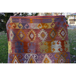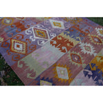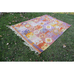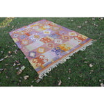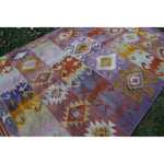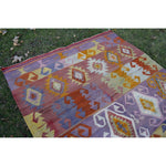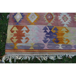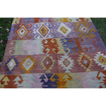 Vintage Pink Blue Turkish Kilim Rug - Designer Wool Carpet 5'10" X 8'6"
