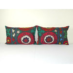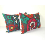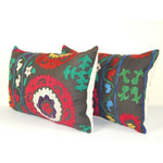 Vintage Suzani Pillow Cover, Pair Boho Cushion Cover 1960s 16" x 24"