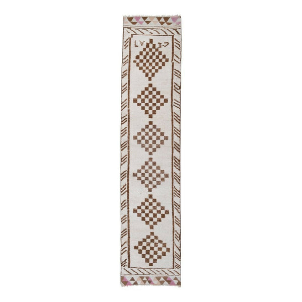 Vintage White Wool Kurdish Herki Runner Rug 2'7" X 11'11"